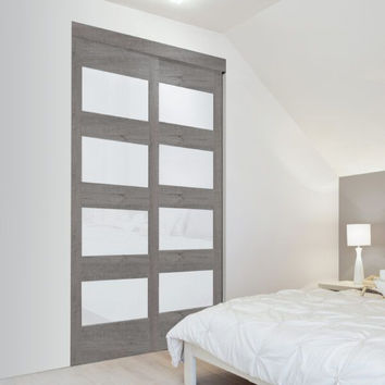 GDL Haru wood frame closet door in standard. Available as slab, custom cut finished & painted, or our full service complete installation package. Good for bedroom closets, sliding bypass openings, room dividers, office partitions, and privacy walls.